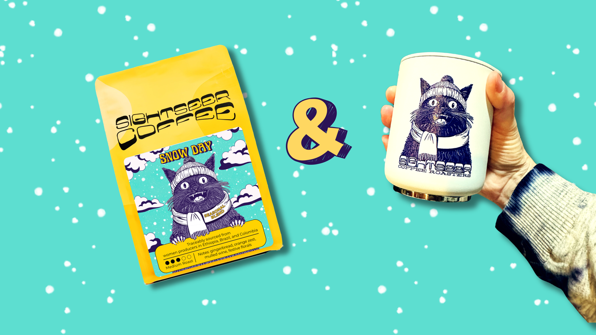 With our Snow Day Seasonal Blend + Travel Mug gift bundle, you get a great deal & your giftee gets the coolest prezzie yet.